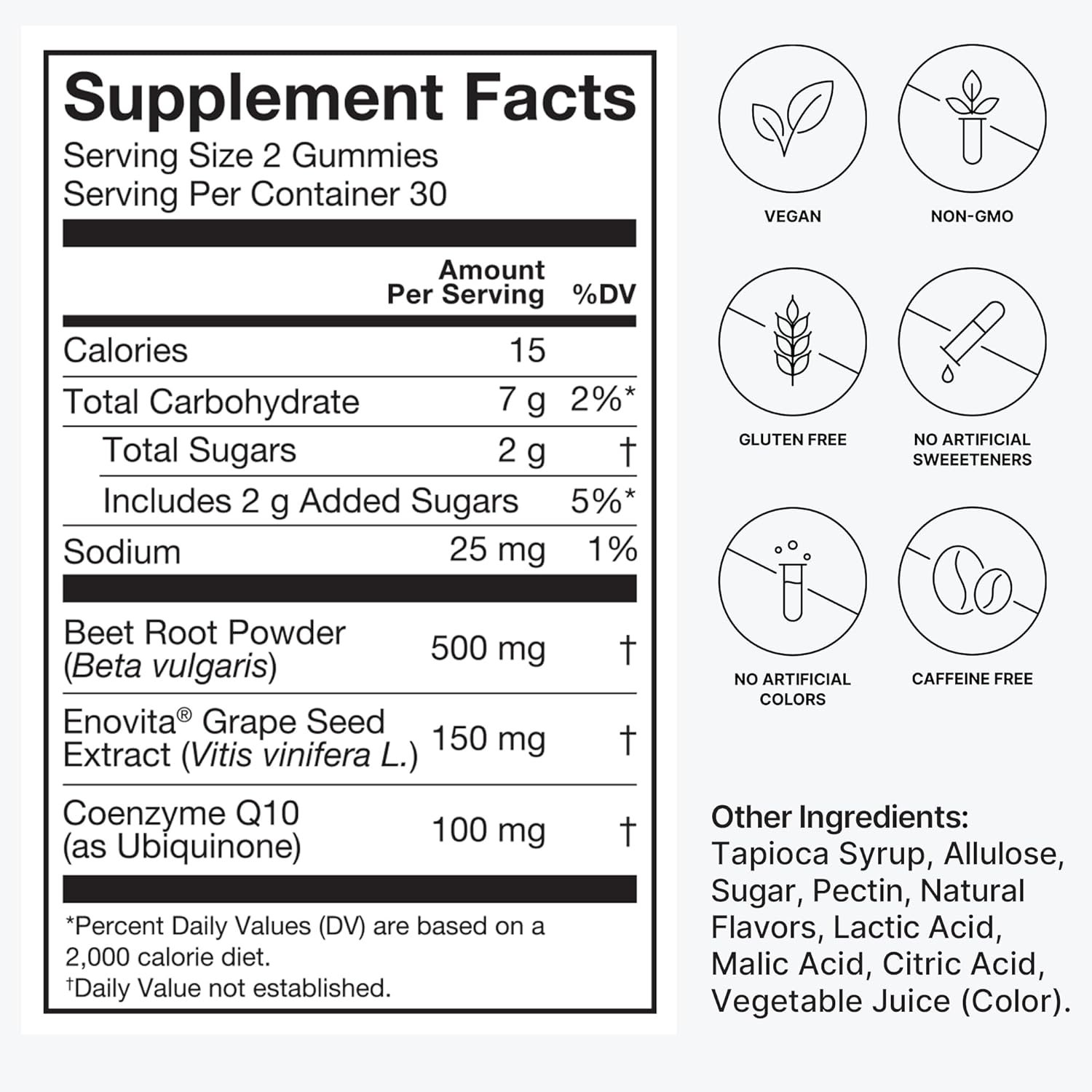 humanN SuperBeets Circulation Gummies – Heart-Healthy Energy, Grape Seed Extract & Beet Root Powder – Pomegranate Berry Flavor,