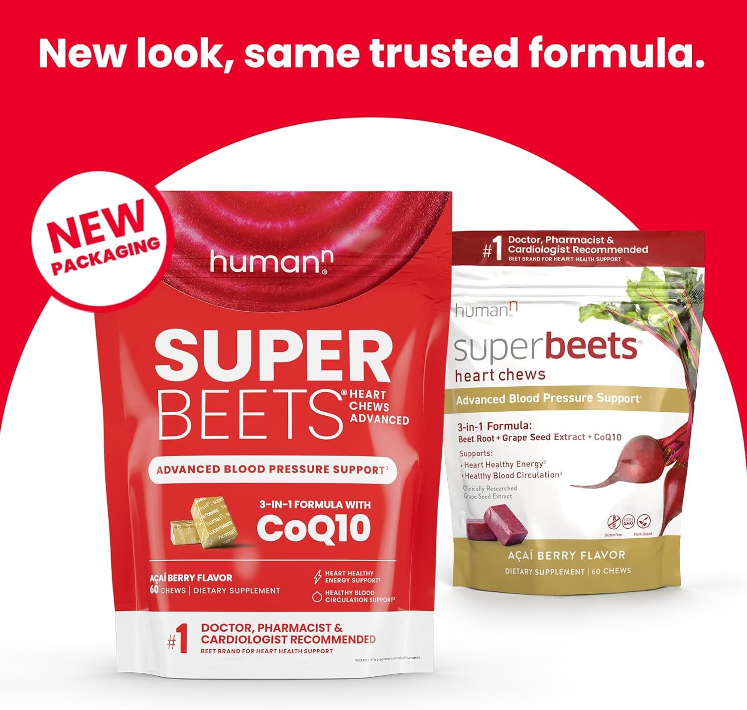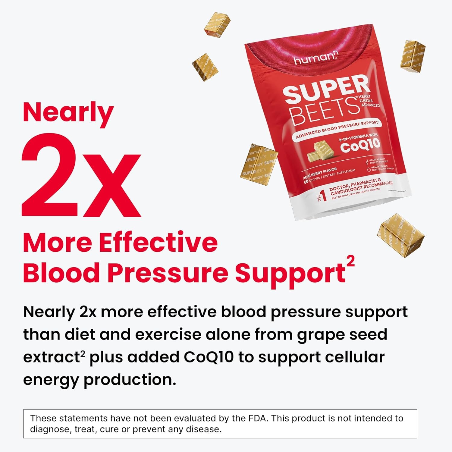 humanN SuperBeets Heart Chews, Nitric Oxide and Blood Pressure Support, Grape Seed Extract & Non-GMO Beet Root Powder Energy