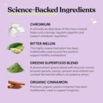 Chromium Picolinate (as Chromax), Bitter Melon, Organic Ceylon Cinnamon, Greens Superfood Blend (as PhytoServ), Potassium, Organic Brown Rice Grain Flour, Organic Brown Rice Sprouted Protein