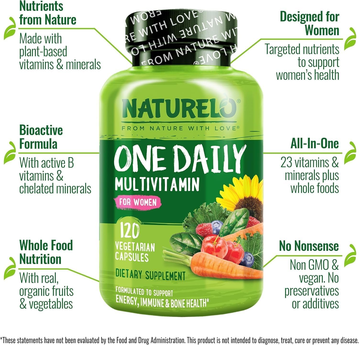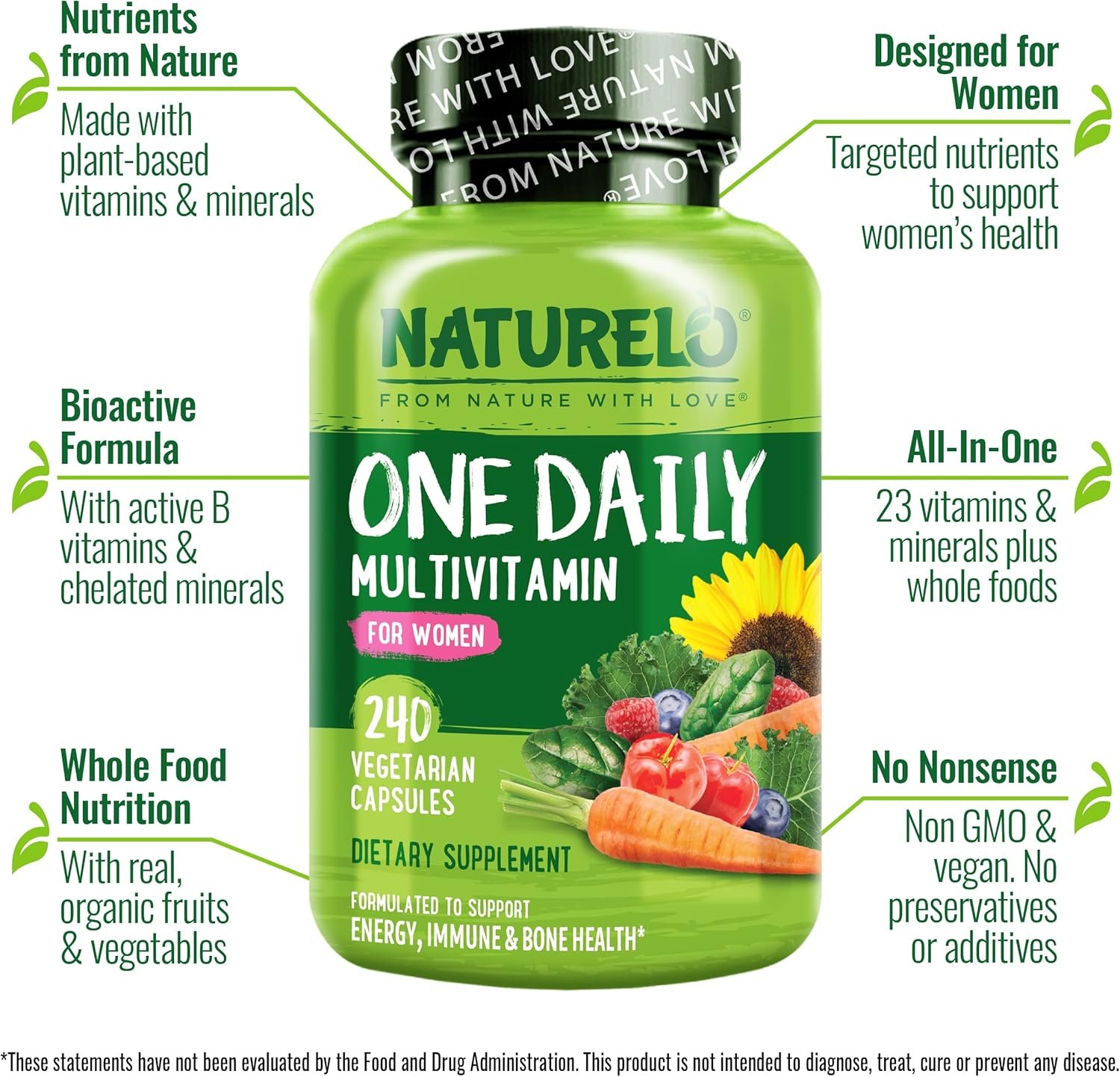 NATURELO One Daily Multivitamin for Women – Energy Support – Whole Food Supplement to Nourish Hair, Skin, Nails – Non-GMO – No