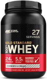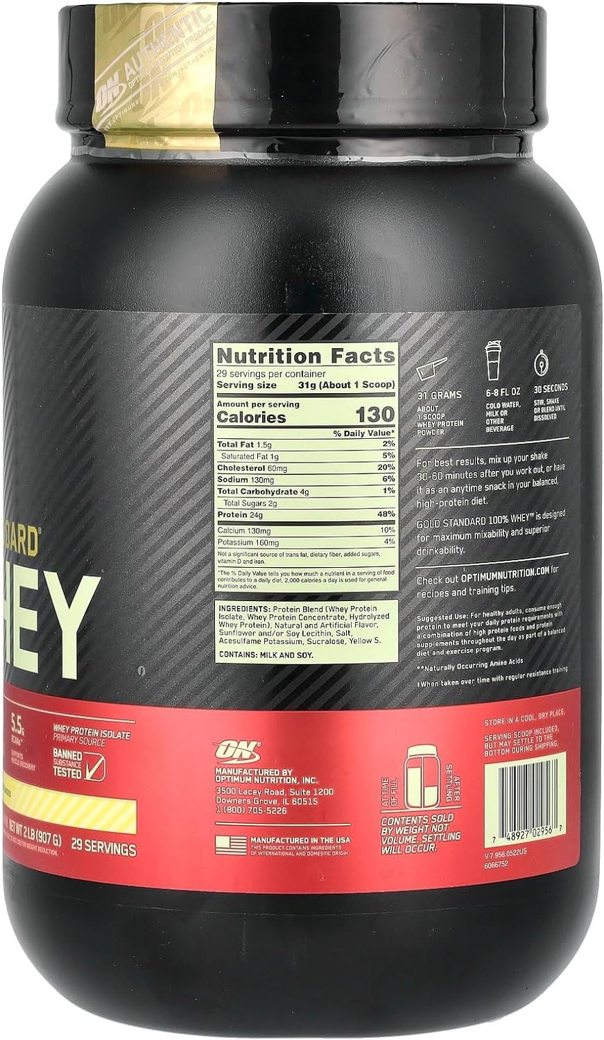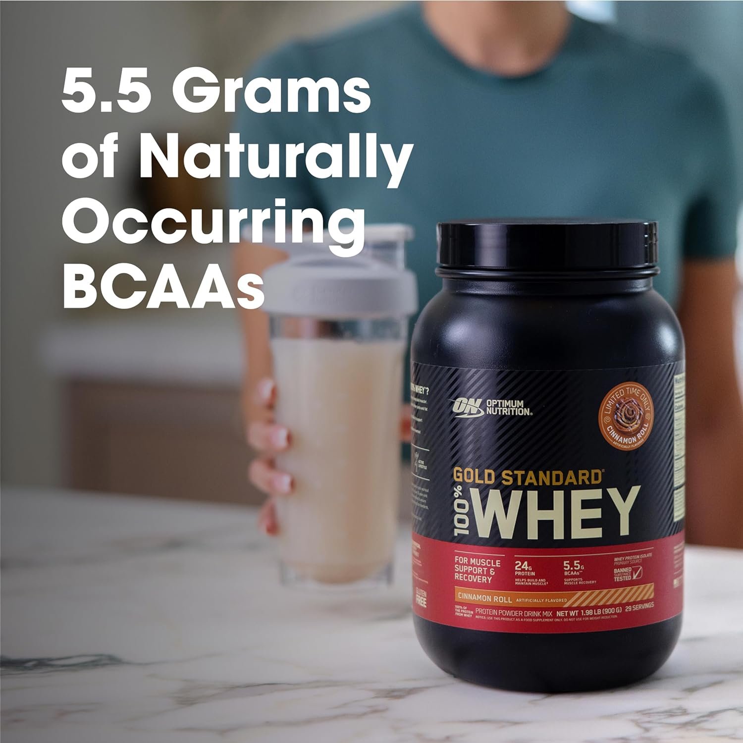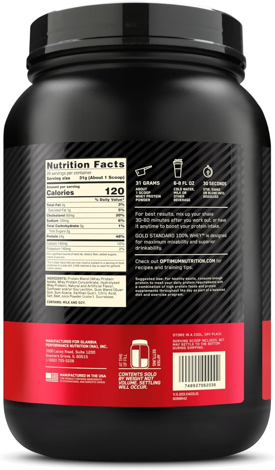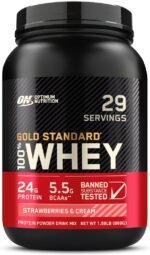100% Whey Protein by Optimum Nutrition for optimal muscle building and recovery